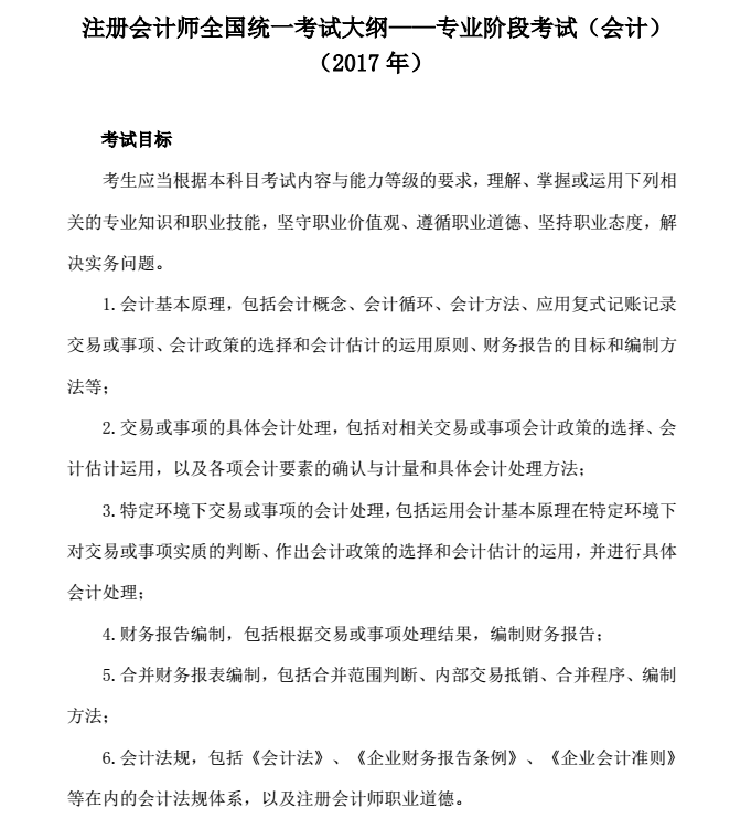 2017注册会计师全国统一考试大纲——专业阶段考试