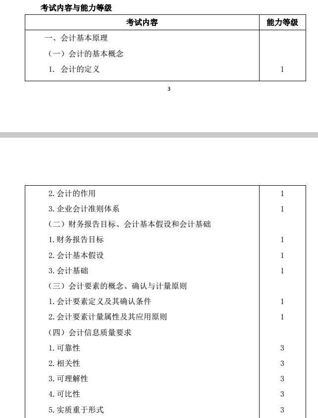 能力等级是对考生专业知识掌握程度的最低要求,分为三个级别: