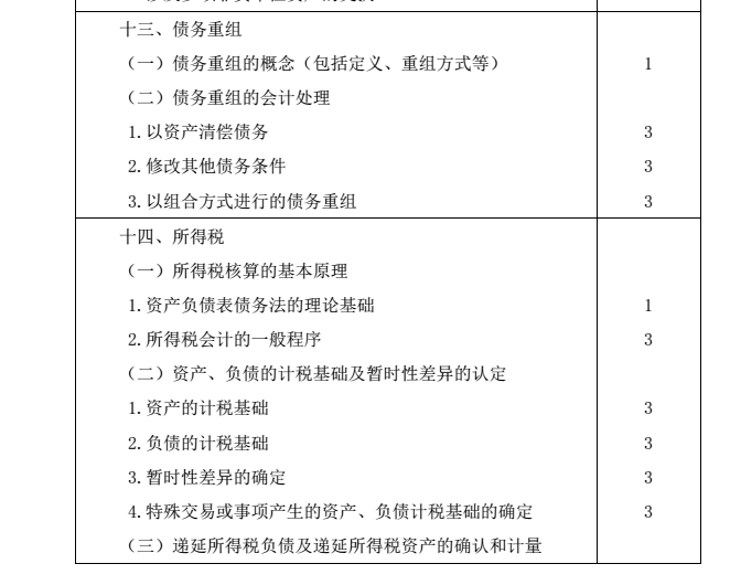 十三、债务重组 (一)债务重组的概念(包括定义、重组方式等) (二)债务重组的会计处理 1.以资产清偿债务 2.修改其他债务条件 3.以组合方式进行的债务重组 | 1 3 3 3 |
