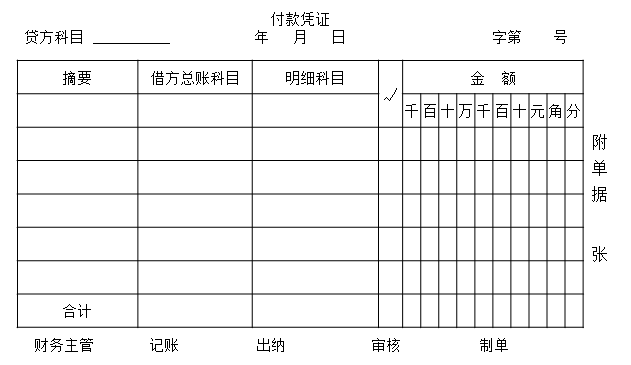 付款凭证是指用于记录库存现金和银行存款付款业务的记账凭证。付款凭证根据有关库存现金和银行存款支付业务的原始凭证编制的专用凭证,据以登记库存现金和银行存款的有关账簿。付款凭证又分为现金付款凭证和银行存款付款凭证。现金付款凭证是根据证明现金支付业务发生的原始凭证编制的付款凭证;银行存款付款凭证是根据证明银行存款支付业务发生的原始凭证编制的付款凭证。