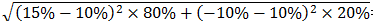 投资组合的期望报酬率=80%×15%+20%×(-10%)=10%,投资组合的标准差=