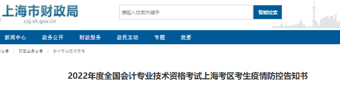 上海市财政局发布2022年初级会计考试考生疫情防控告知书,事关能否顺利参加考试,请各位上海的考生朋友仔细阅读!