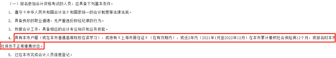 部分地区要求考生在报名时,提供居住证、户籍证或社保缴纳证明等。例如,上海在23年考务安排中要求:具有本市户籍(或在本市普通高等院校在读学习),或持有《上海市居住证》(在有效期内),或近2年内(2021年1月至2022年12月)在本市累计缴纳社会保险满12个月,或报名时本市社保处于正常缴费状态。