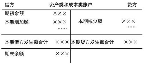 资产类和成本类账户结构用T型账户表示,如下图所示。