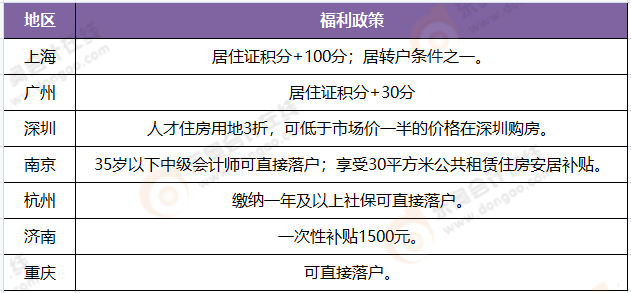 在我国对于中高端会计人才的需求量还是很大的,为了更好的建设城市发展,很多一、二线城市针对会计人才出台了很多福利待遇,比如可享受落户积分、租房/购房补贴、技能提升奖励等多方面的福利,赶紧来了解下!