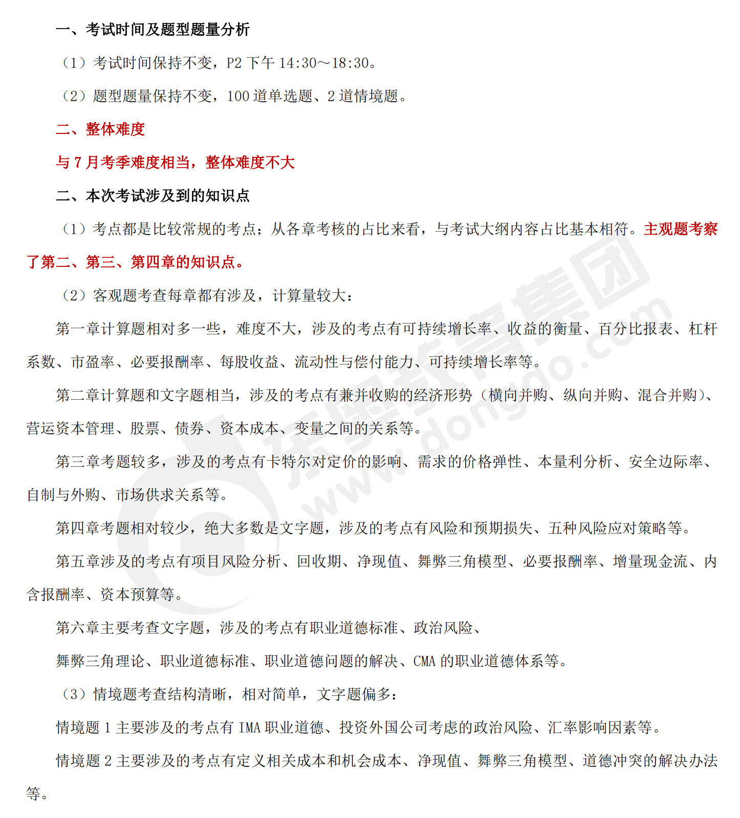 · 2022年11月12日CMA-P2科目考情分析 ·