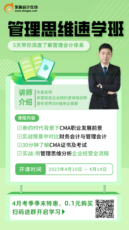 如果你对管理会计还不是很了解,那么花上0.1元简单学习一下也不亏,还在等什么?赶快扫码进群吧。想获取更多有关cma考试等相关内容,请持续关注东奥会计在线cma频道。