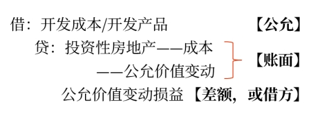 借:固定资产/无形资产 投资性房地产累计折旧 投资性房地产累计摊销 投资性房地产减值准备 贷:投资性房地产 累计折旧/累计摊销 固定/无形资产减值准备 | 借:开发成本/开发产品 投资性房地产累计折旧 投资性房地产减值准备 贷:投资性房地产 |