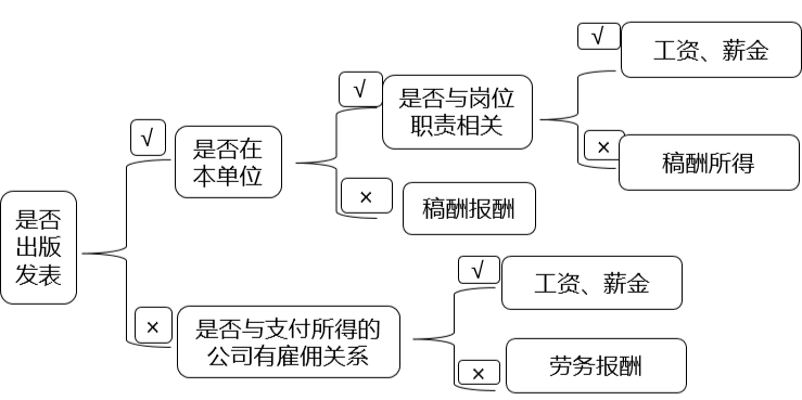 判定 | 个人因其作品以图书、报刊形式出版、发表而取得的所得 |