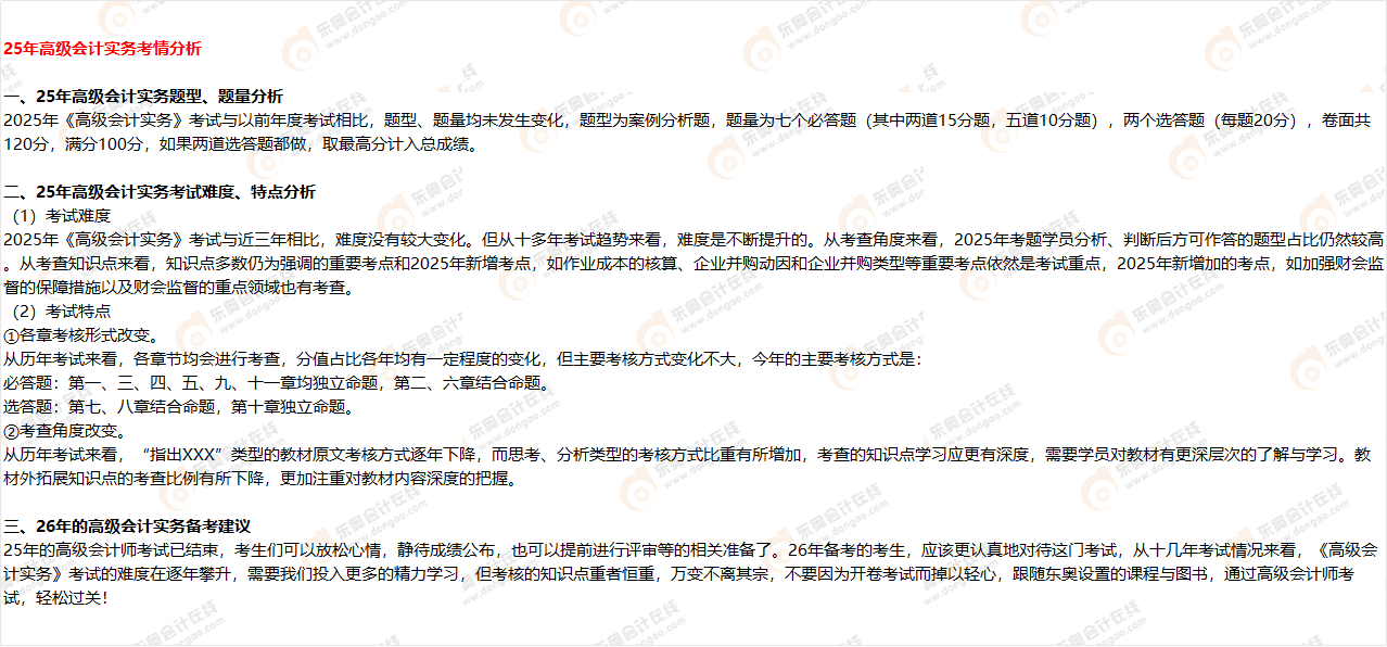 2025年高级会计师考试已经结束。想必考生们对考试试题的考点所在及考试情况很好奇,东奥会计根据2025年高会考试试题情况,整理了考点分析及考情分析,让我们一起了解具体情况吧!