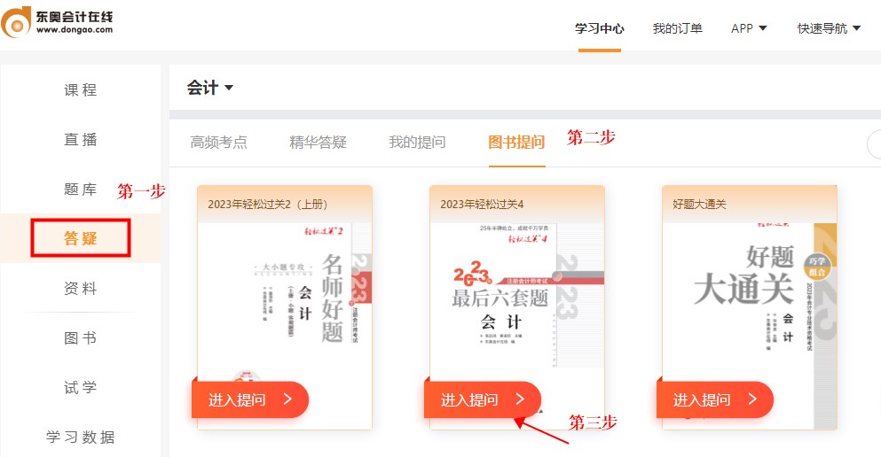 会计云课堂APP图书答疑流程: