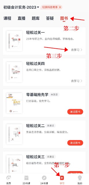 2、点击图书板块--去学习;