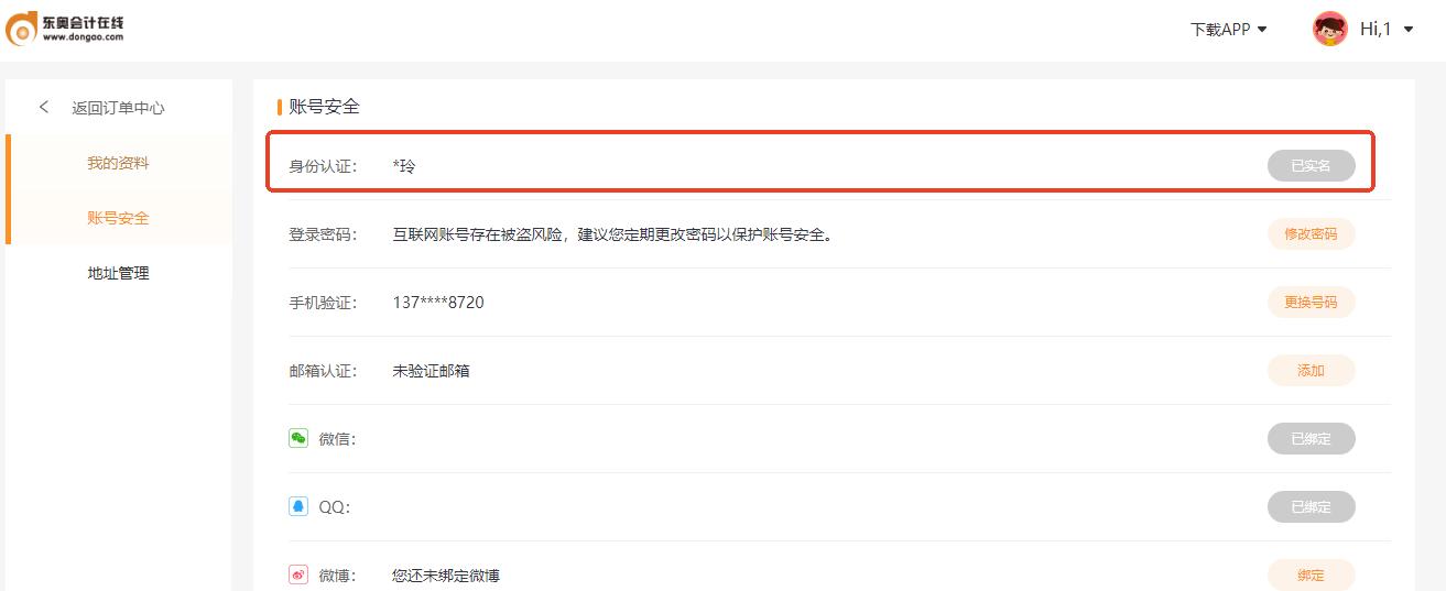 点击链接进入东奥实名认证页面:https://my.dongao.com/secur 填写信息。