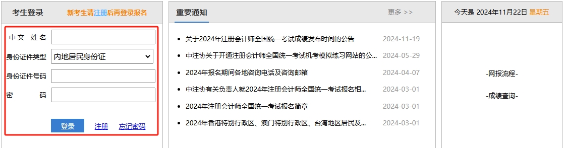 方式1:直接输入网报系统网址进行查询,网报系统网址为https://cpaexam.cicpa.org.cn/。