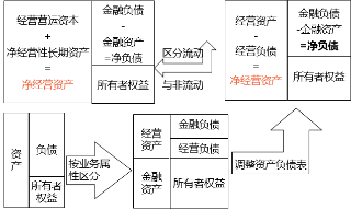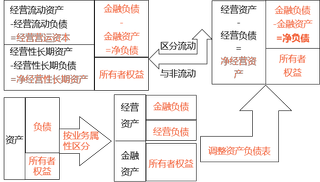 区分经营资产和金融资产、经营负债和金融负债,所有者权益不变。