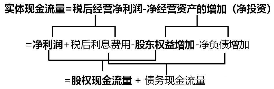 实体角度 | 实体现金流量 | 等于 | 税后经营净利润 | 减 | 净经营资产增加 |