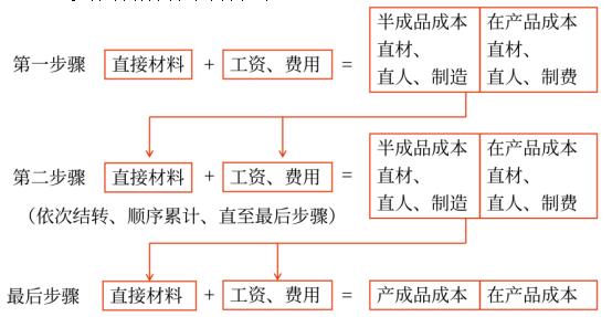 在计算各步骤成本时,不计算各步骤所产半成品成本,也不计算各步骤所耗上一步骤的半成品成本,而只计算本步骤发生的各项其他费用,以及这些费用中应计入产成品成本的份额。