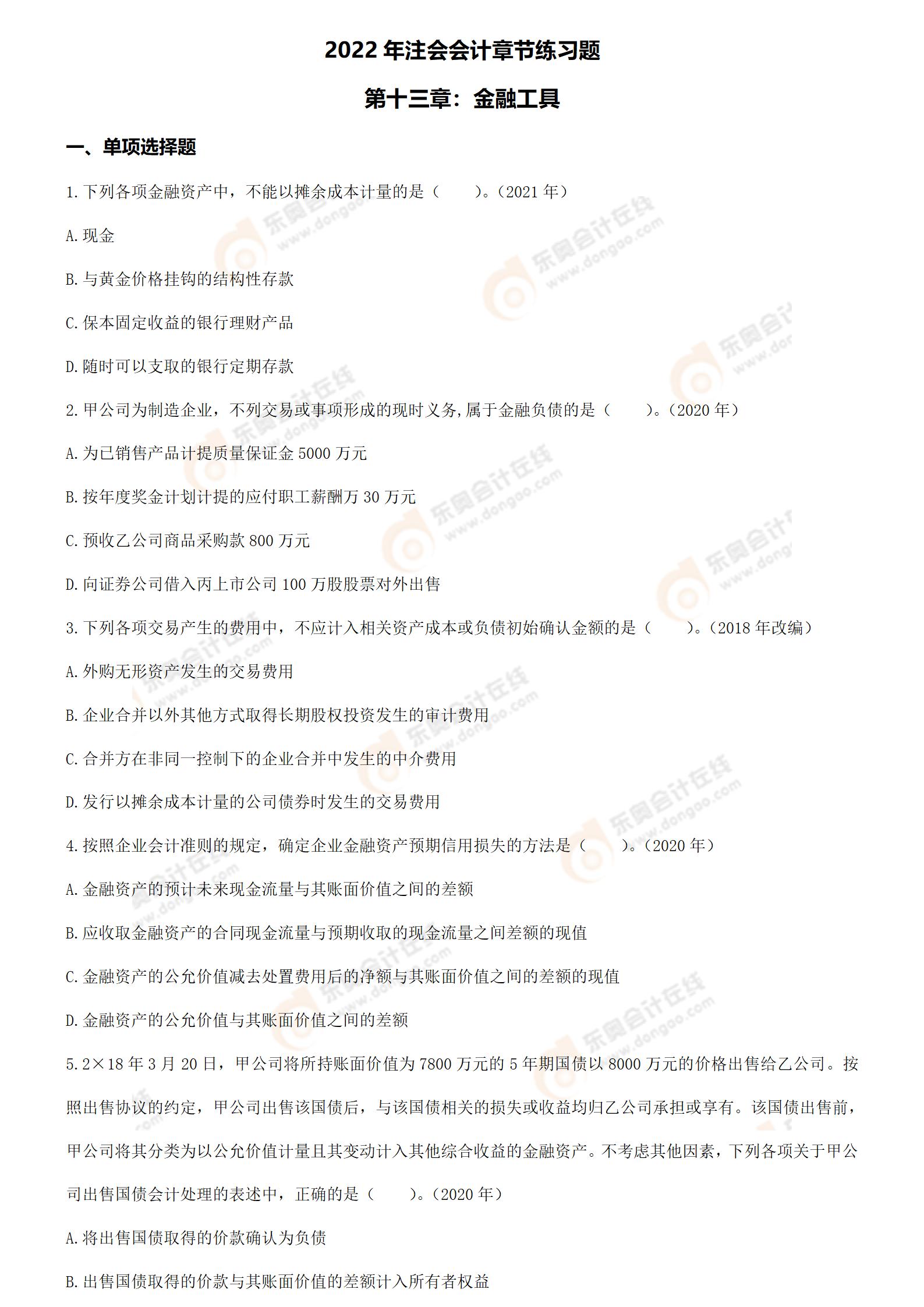 注:章节练习题出自东奥名师张志凤老师的2022年《会计》基础精讲班课程讲义