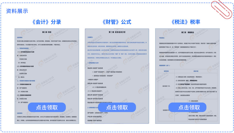 根据新版教材整理会计分录大全、税法税率表及财管公式合辑,方便快速查找和记忆。资料重点标注新增及变化部分,并根据历年考情,升级展示各章节学习注意事项,考生可根据提示捕捉考试重点,有效利用学习时间。