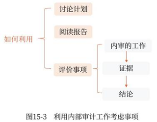 如图15-3所示,如何利用内部审计工作,注册会计师需要考虑以下事项。