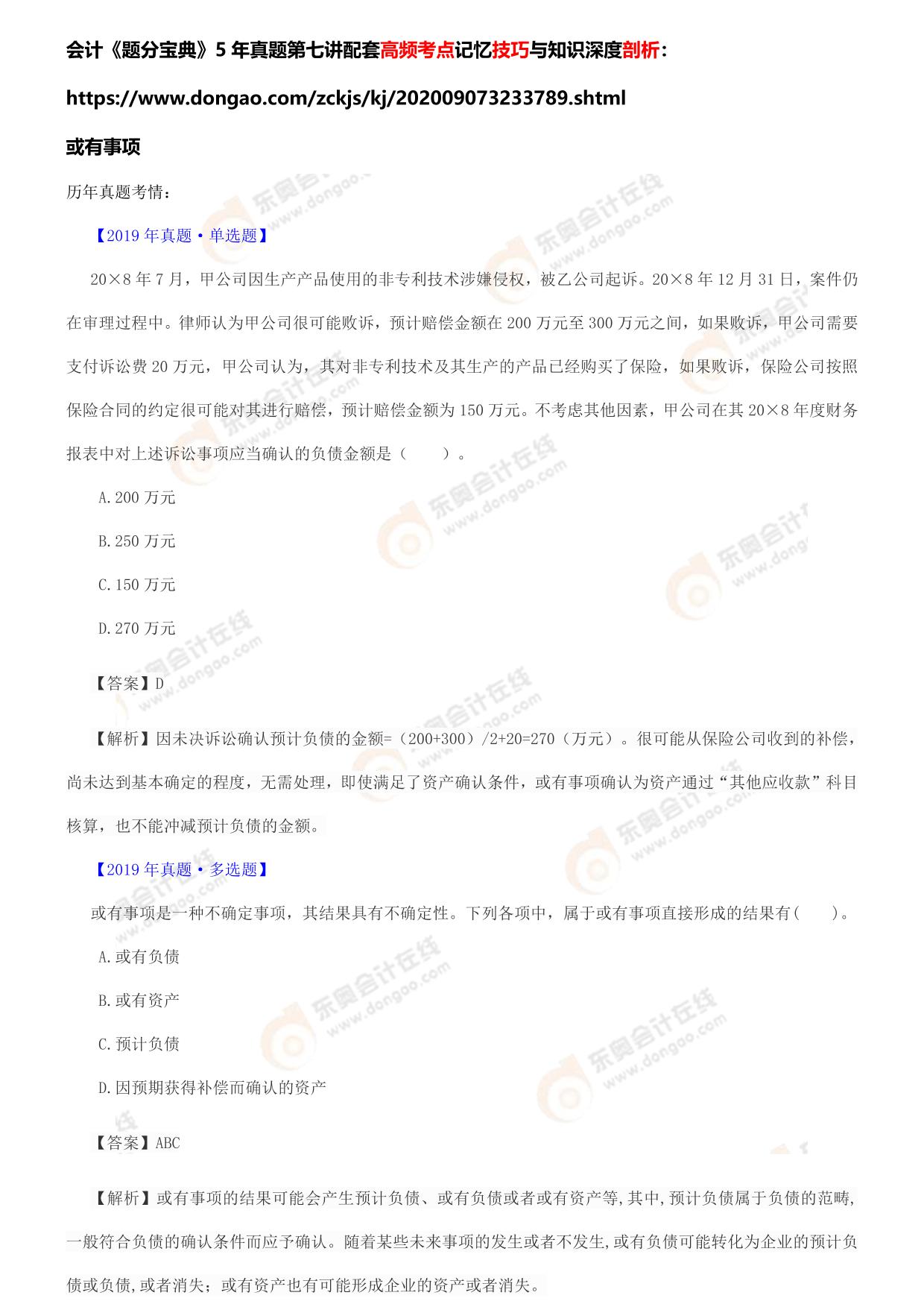 2020年CPA-会计《题分宝典》5年真题速刷第七讲