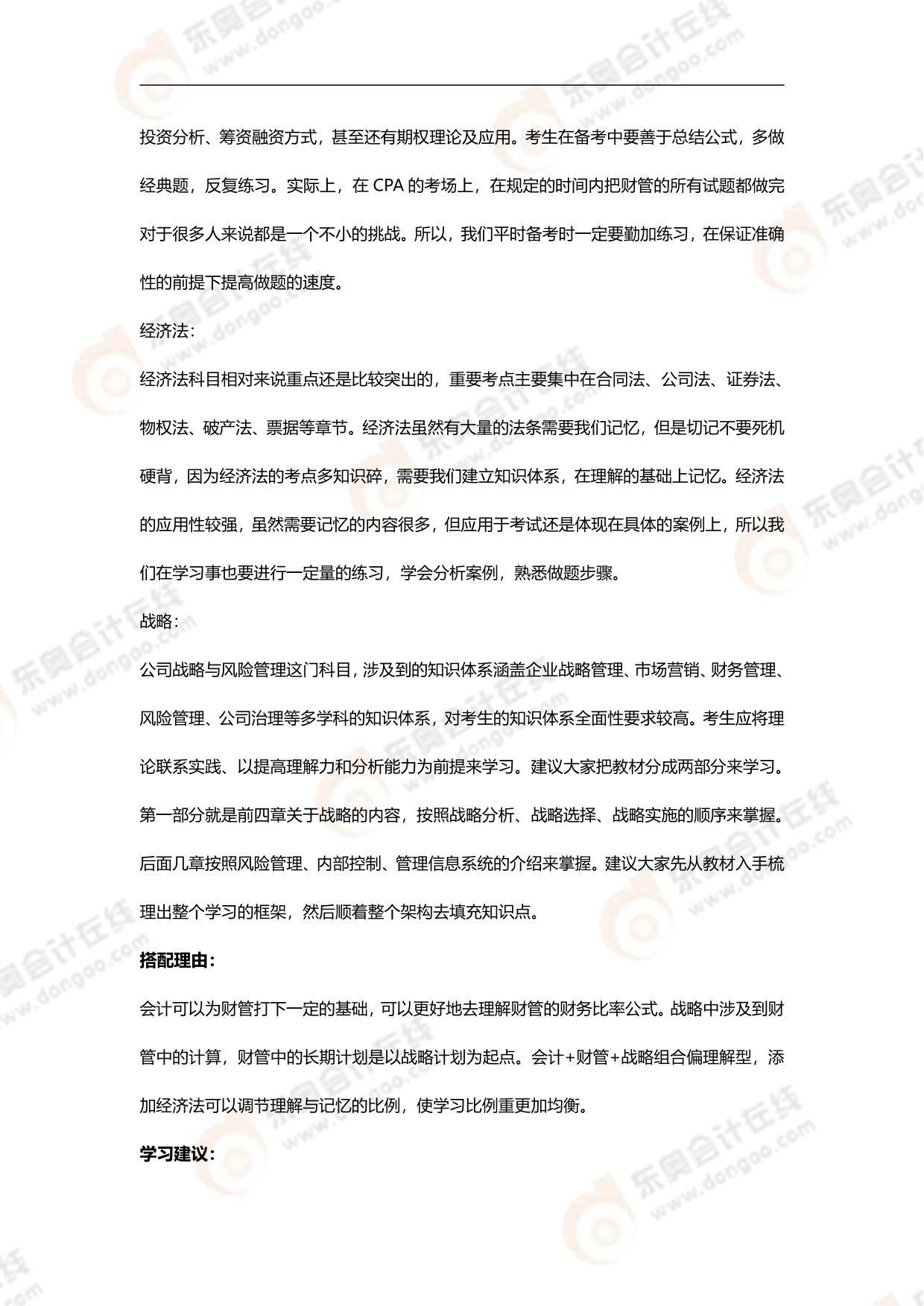 注会四科联报搭配建议:会计+财管+经济法+战略
