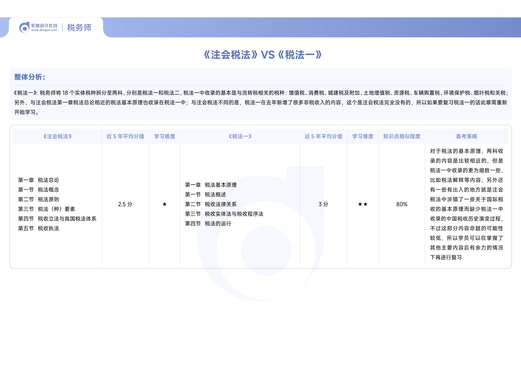 25年注会《税法》VS税务师《税法一》内容对比及备考策略