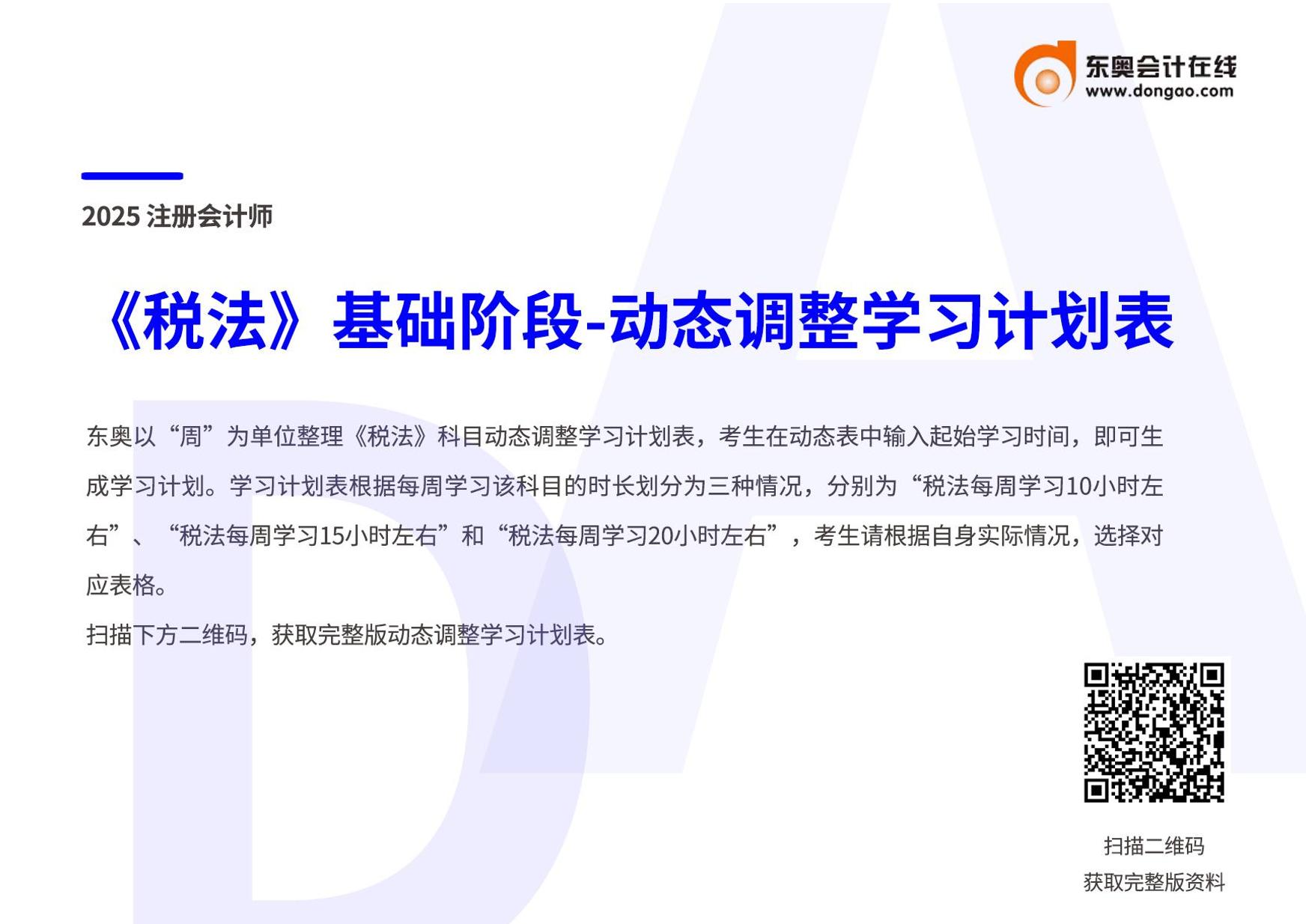 25年注会《税法》基础阶段动态调整学习计划表