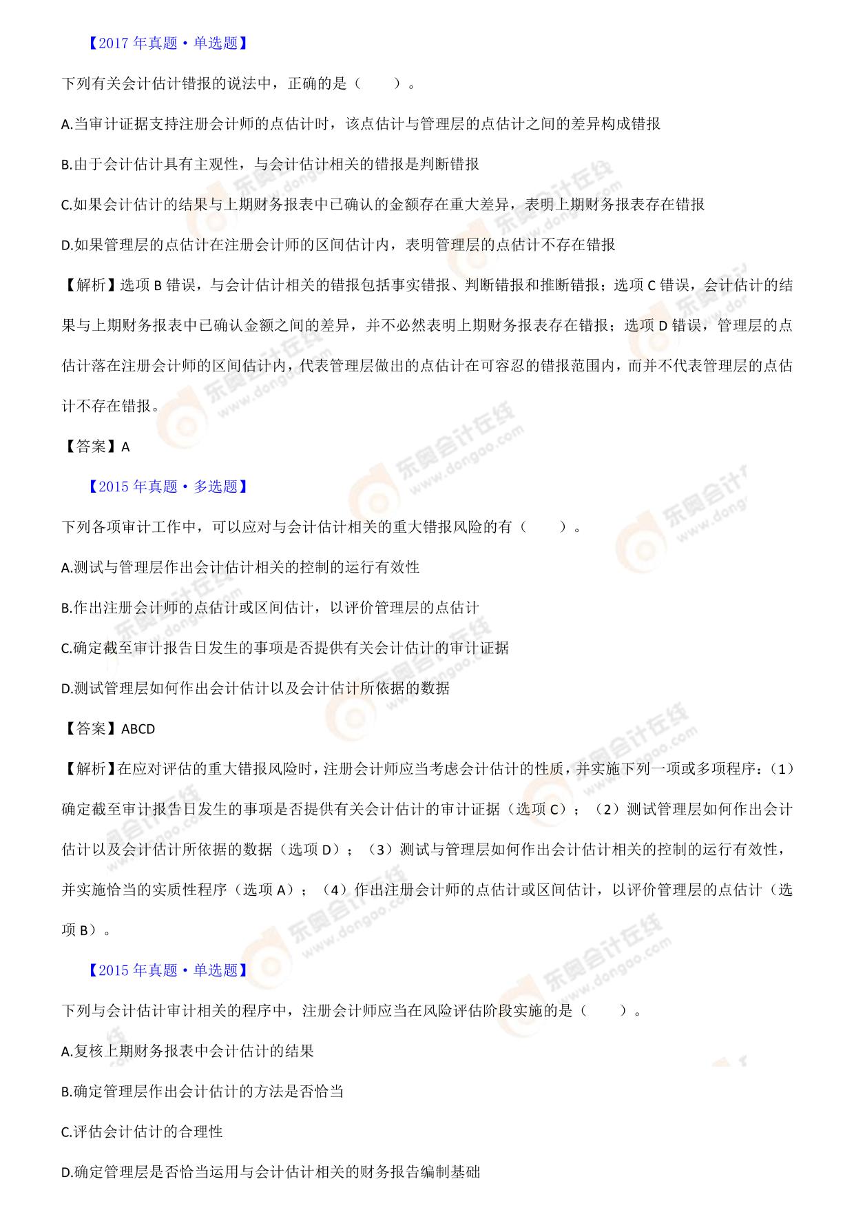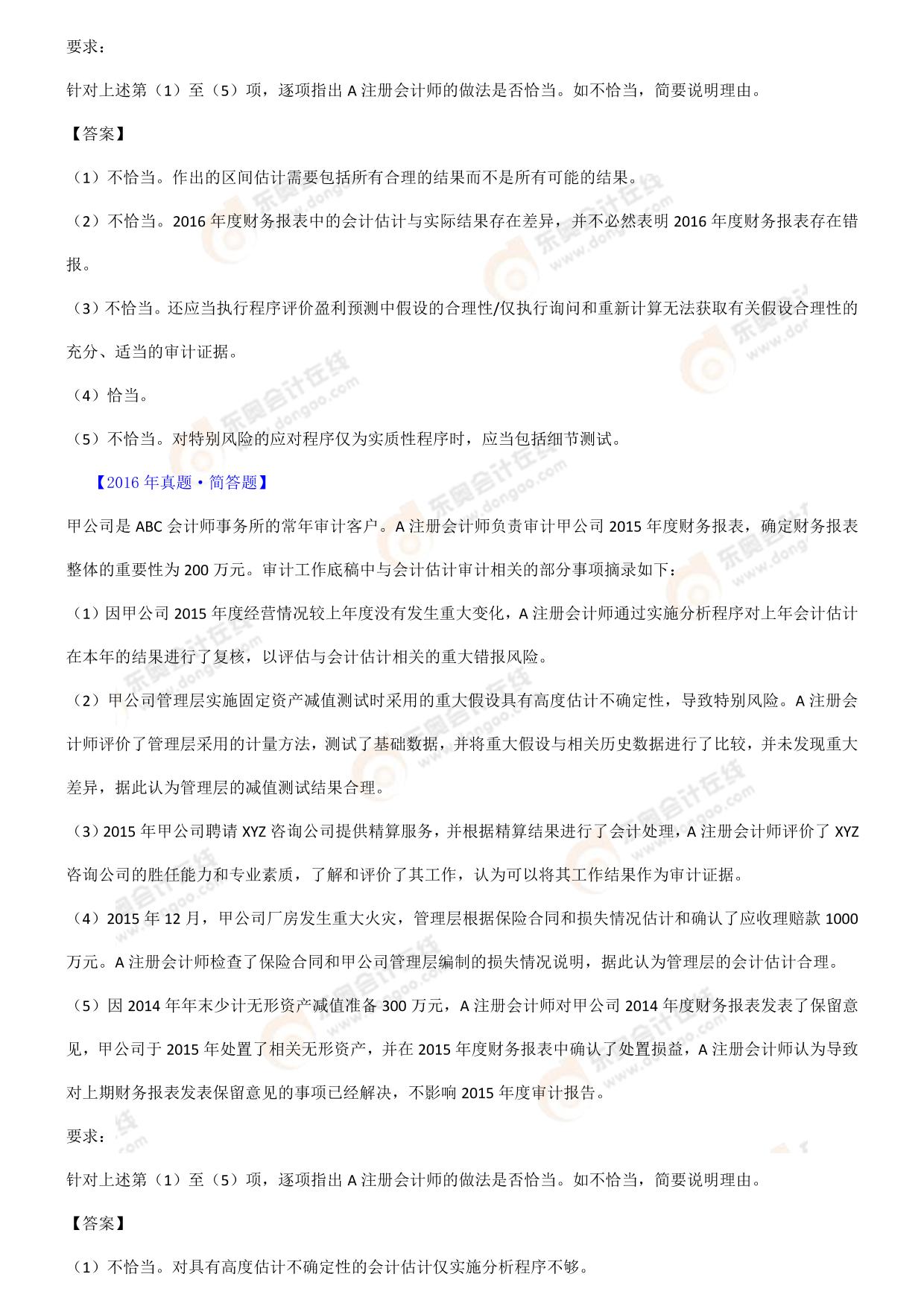 2020年CPA-审计《题分宝典》5年真题速刷第十三讲