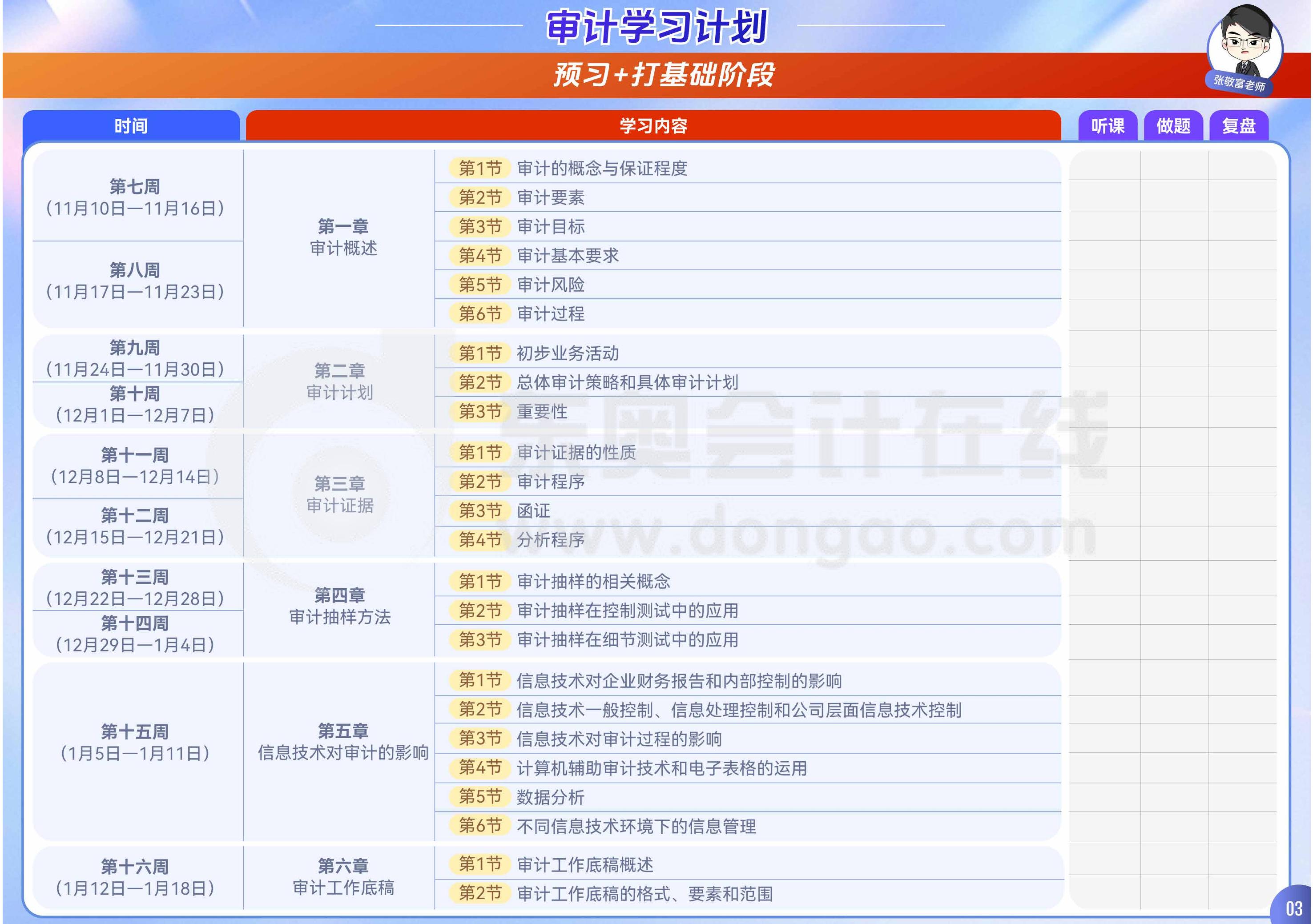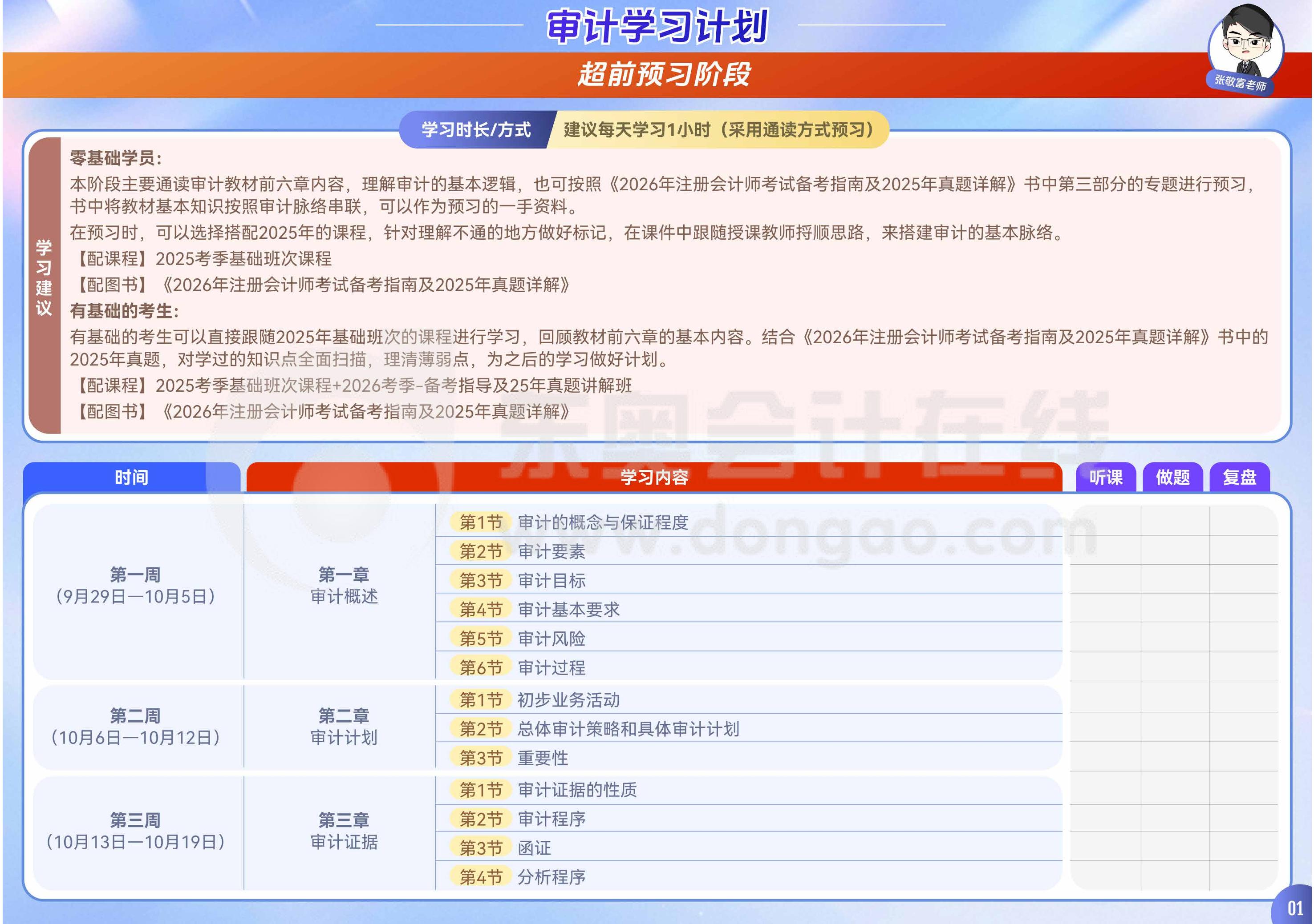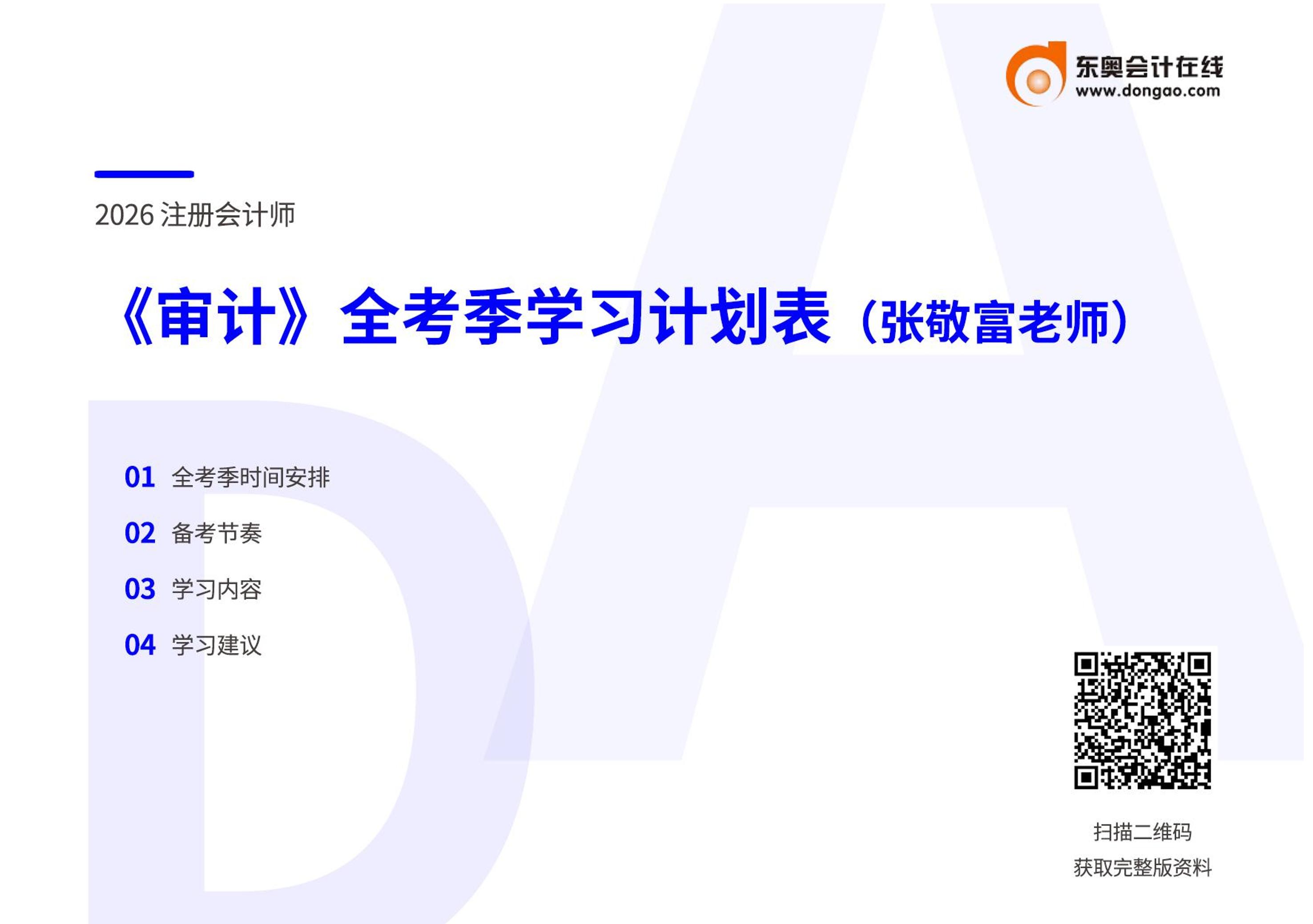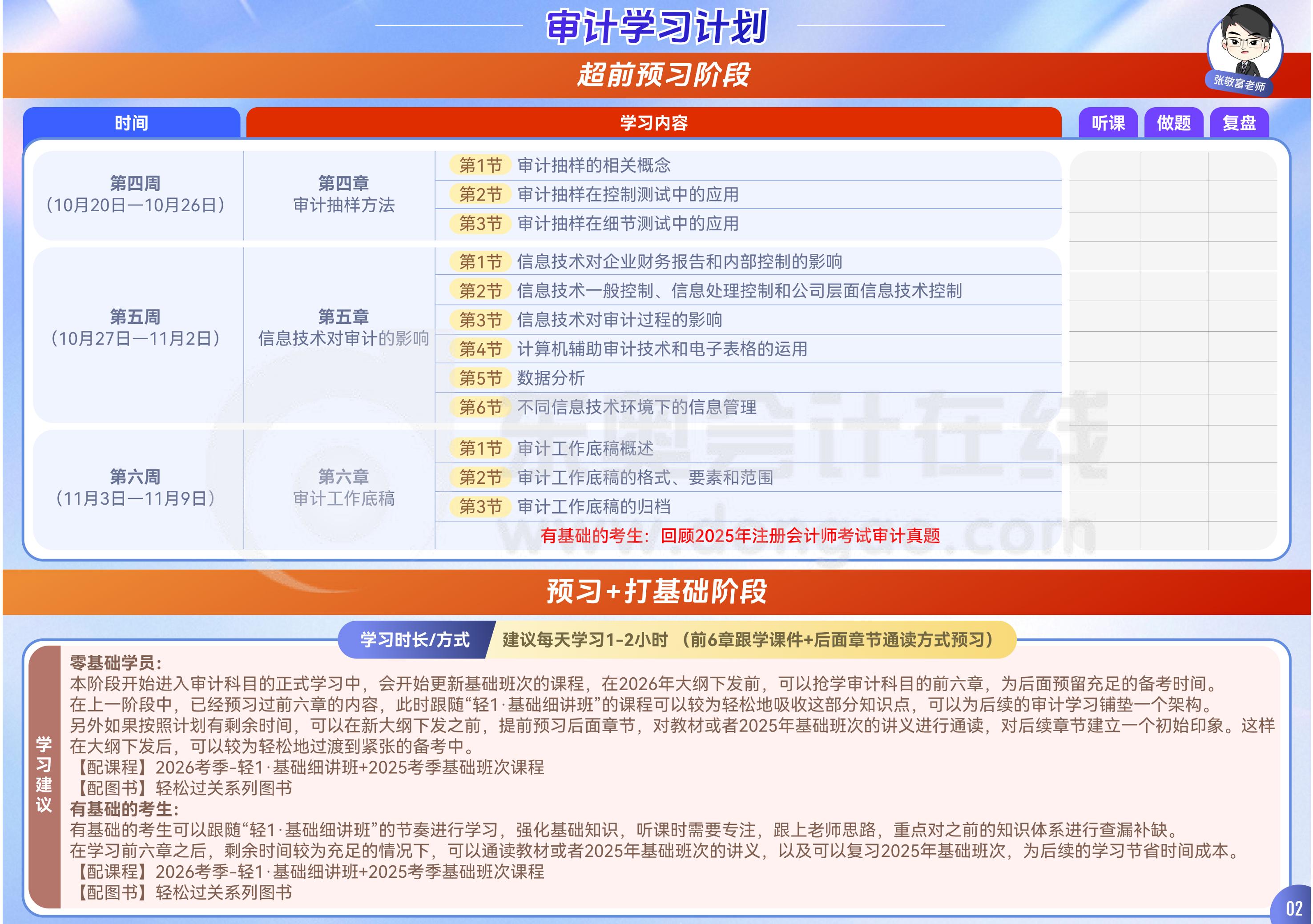 26年注会《审计》全年学习计划表-张敬富老师