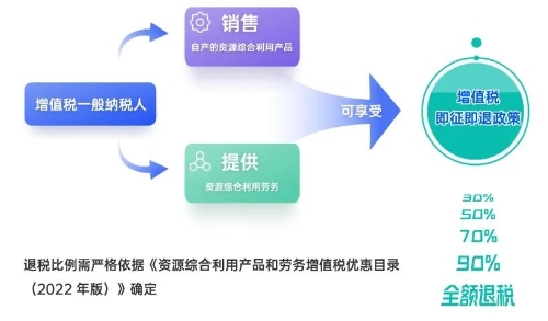 增值税一般纳税人销售自产的资源综合利用产品和提供资源综合利用劳务,可享受增值税即征即退政策,退税比例需严格依据《资源综合利用产品和劳务增值税优惠目录(2022年版)》确定,共分为五档:90%、70%、50%、30% 及全额退税。