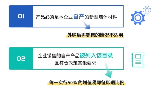 纳税人销售自产的列入《享受增值税即征即退政策的新型墙体材料目录》的新型墙体材料,实行增值税即征即退50%的政策。