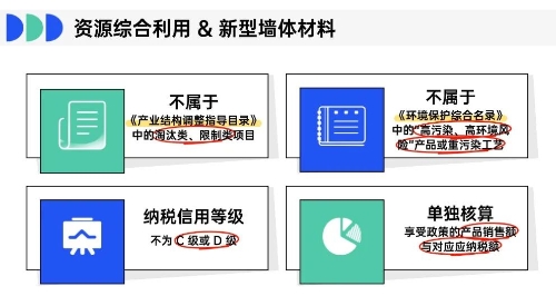 1.企业资源综合利用产品和提供资源综合利用劳务,自产的新型墙体材料不属于《产业结构调整指导目录》中的淘汰类、限制类项目。