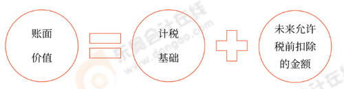 可以这样理解,会计上的账面价值包括两部分:一部分是税法认可的,称为计税基础;另一部分是税法不认可的,未来期间才允许税前扣除的金额。