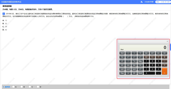 考生如果计划自带计算器进入考场,那么该计算器是有指定要求的,具体要求如下。除了自带计算器外,税务师考试机考系统中也包括计算器功能,供考生们使用。
