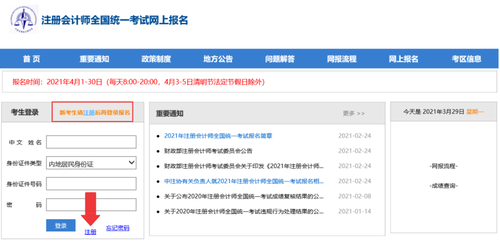 1.首次报考的考生,在报名之前必须先进行注册,登录“注册会计师全国统一考试网上报名系统”进行注册,报名开始后才可登录报名。官方报名网址:https://cpaexam.cicpa.org.cn