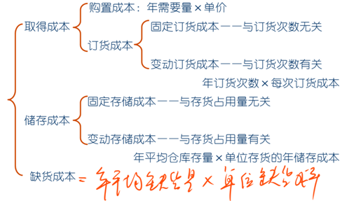 与储备存货有关的成本,包括取得成本、储存成本、缺货成本。