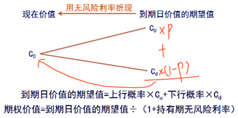 到期日价值的期望值=上行概率×Cu+下行概率×Cd