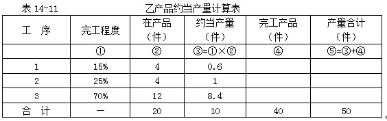 (1)计算501批乙产品在产品约当产量,如表14-11所示。