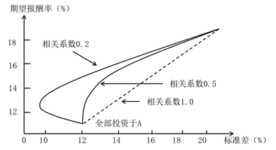 (2)对于一个含有两种证券的组合,投资机会集曲线描述了不同投资比例组合的风险和报酬之间的权衡关系。