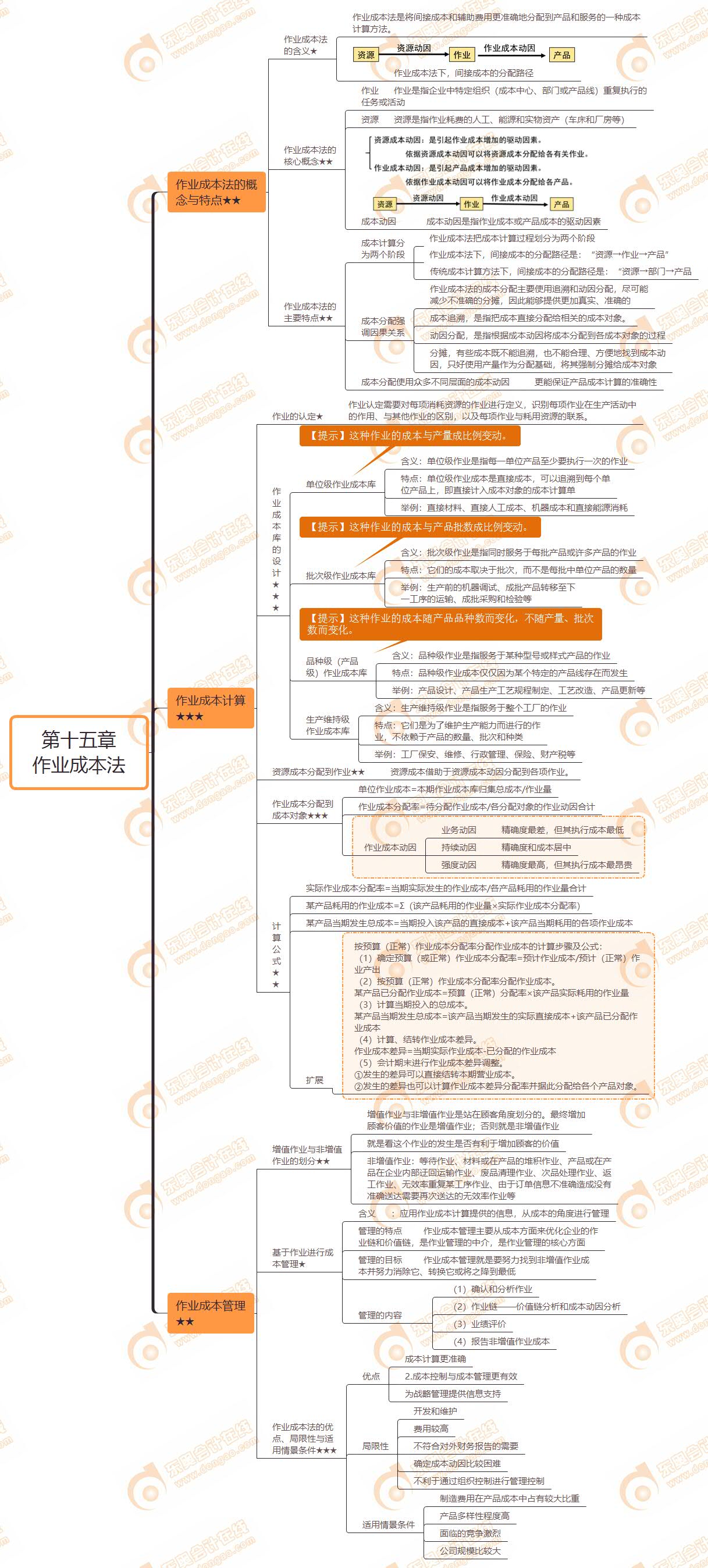 本章学习重点是作业成本的计算原理、作业成本的优点、局限性与适用情景条件。在近几年的注册会计师考试中,所占分数不多,考查题型主要是客观题,但也可以与第十三章产品成本计算结合以主观题的形式考查。通过本章的思维导图和章节练习,能够提高大家的复习效率,赶快收藏吧。