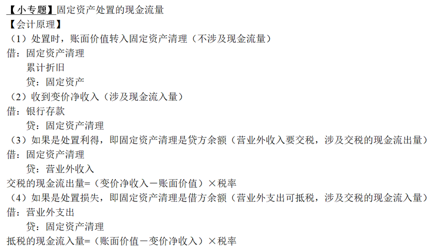 固定资产处置的现金流量=变价净收入×(1-税率)+账面价值×税率