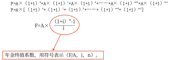 方法2: =年金额×预付年金终值系数=A×[(F/A,i,n+1)-1] |