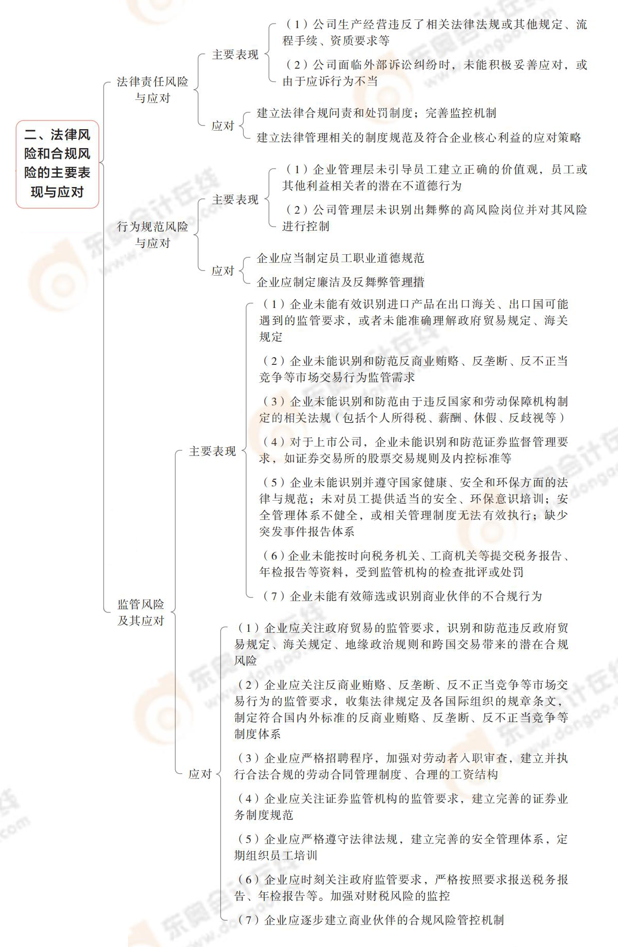 以上为东奥教研团队整理的注会考试战略科目第八章企业面对的主要风险与应对的考点导图。本章学习时,要注重学习技巧,逐渐摸索总结适合自身的记忆方法。在条件允许情况下,复习尽量全覆盖,力争做到应背尽背。