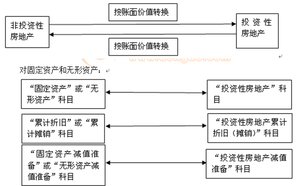 (2)将投资性房地产转为自用时,应按其在转换日的账面余额、累计折旧、减值准备等,分别转入“固定资产”、“累计折旧”、“固定资产减值准备”等科目。