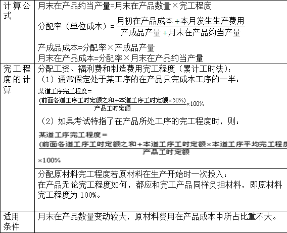二是“分配法”,即将待分配费用按一定比例在完工产品与月末在产品之间进行分配。