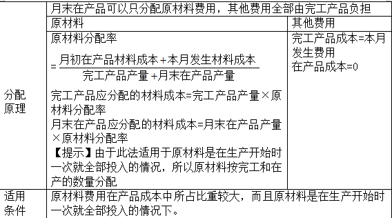 一是“倒挤法”,即先确定月末在产品成本,再用待分配费用减月末在产品成本得出完工产品的成本;