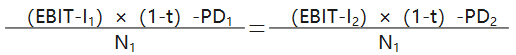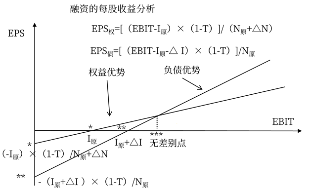 (2)每股收益无差别点:令两个方案EPS相等的息税前利润EBIT,或其他参数(如收入、销量等)。