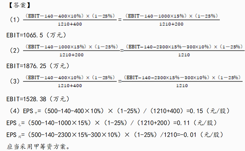 (1)计算甲方案与乙方案的每股收益无差别点息税前利润;