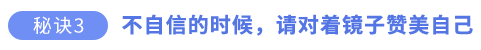 所以,害怕失败,想要放弃的时候,不妨昂首挺胸地站在镜子前,做3~4次深呼吸后,看着自己的眼睛,大声告诉自己:“我能行!”“我一直在努力!”“我一定能拿到注会证书!”,你也可以用口红或香皂把这句话写到镜子上。每天早晚一遍地激励自己,过几天你就会发现,那些让你裹足不前的“丧气”都被打飞出去,你的自信会逐渐增强。但同时也要注意,这只会在短期内增加你的自信心,想要长久保持下去,在自我暗示后,还要做让自己变得符合自我暗示的事。